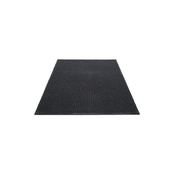 This mats carpeted surface is made from PET plastic bottles, and the all-rubber backing is made from used tires. Bi-level construction traps dirt and moisture below the surface so your interior spaces stay clean and dry. The durable rubber backing is slip-resistant to keep mat in position. Easy-to-cleanjust sweep, shake out or vacuum. Recommended for hard surface floors and low-pile carpet entryways, hallways and lobbies. Mat Type: Wiper Mat; Application: Indoor Entryway; Width: 36in; Length: 60in.