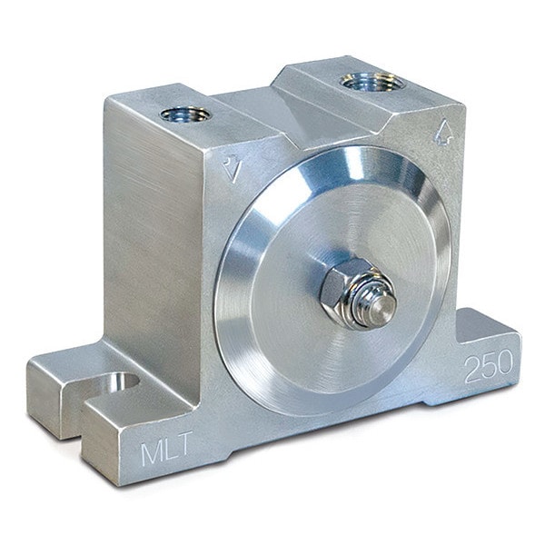 Pneumatic Vibrator, Housing Material Aluminum, Outlet Connection Size 3/8 in, Outlet Connection Type NPT, Air Flow Rate 8 cfm @ 60 psi, 9 cfm @ 80 psi, Maximum Force 480 lbf, Inlet Connection Size 1/4 in, Inlet Connection Type NPT, Maximum Vibration Speed 7,000 vpm, Maximum Bin Weight Capacity 4,800 lb, Overall Height 3.39 in, Overall Length 5 in, Overall Width 3.5 in, Sound Level 72 dBA, Duty Cycle Continuous, Pneumatic Vibrator Type Turbine, Force @ PSI 250 lbf @ 60 psi, 480 lbf @ 80 psi