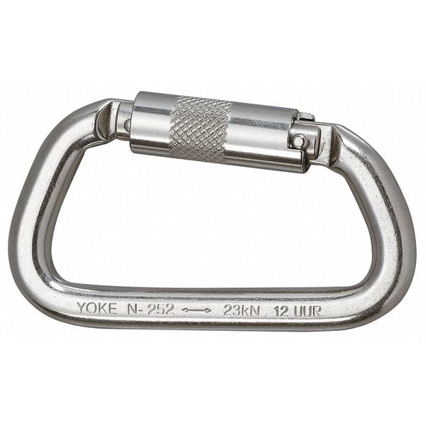 Carabiner, Captive Eye or Pin No, Color Silver, Lock Type Double-Action Twist Lock, Gate Opening 3/4 in, Material Stainless Steel, ANSI Standards Met ANSI Z359.12, ASTM Standards Met ASTM 48 Hours Salt Spray, OSHA Standards Met OSHA 1926.502, Other Standards CSA Z259.12, EN362:2004/B, Carabiner Shape Offset-D, Includes Retaining Pin No, Weight Capacity 400 lb, Overall Width 4 1/2 in, Inside Length 4 5/8 in, Inside Width 2 in, Overall Length 2 3/4 in, Tensile Strength 5,000 lb