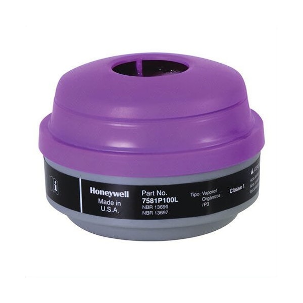 North By Honeywell combination cartridge series: N, for use with: 5400, 5500, 7600 and 7700 series respirators, organic vapor gas, P100 filter class, 0.999 filter efficiency, threaded connection, resists: chemicals and particulates.