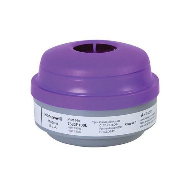 North By Honeywell combination cartridge series: N, for use with: 5400, 5500, 7600 and 7700 series respirators, acid gas gas, P100 filter class, 0.999 filter efficiency, threaded connection, resists: chlorine, chlorine dioxide, formaldehyde, hydrogen chloride, hydrogen fluoride and sulfur dioxide.