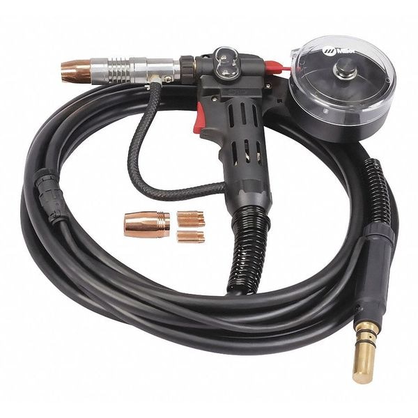 Spool Gun, MIG Gun Type Spool Gun, Cooling Method Air-Cooled, Series Spoolmate 150, Maximum Current 150 A, Duty Cycle 60 Percent, For Gas Type Ar (Argon), Maximum Wire Diameter 0.035 in, Cable Length 20 ft, For Rear Connection Type Miller-Compatible, Handle Type Pistol Grip, Trigger Type Standard, For Wire Type Aluminum, Model 301272, Tip Series Spoolmate, Welding Processes MIG Welding (GMAW), Spool Capacity 4 in, Application Aluminum Welding