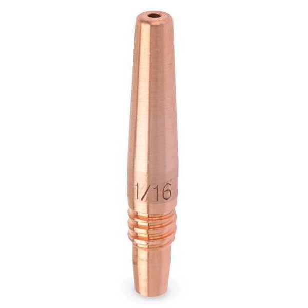 Tapered Contact Tip, Compatible with Brand Miller, Series FasTip, Compatible with Model 130831, 195156, 198127, 198128, 198129, 198130, 300001, 300003, 300004, 301568, 301569, 301570, 301571, 301572, 301573, Compatible with Series Spoolmatic 15, Spoolmatic 30, XR-Aluma-Pro, XR-Pistol, Tip Shape Tapered, Duty Rating Heavy Duty, Maximum Wire Diameter 0.0625 in, For Wire Type Aluminum, Maximum Current 250 A, Connection Type Threaded, For Nozzle Series FasTip