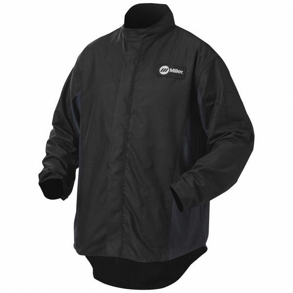 Welding Jacket, Cotton, 9 oz, 30 in Length, Zipper Closure, 1 Pockets, Black/Navy, S