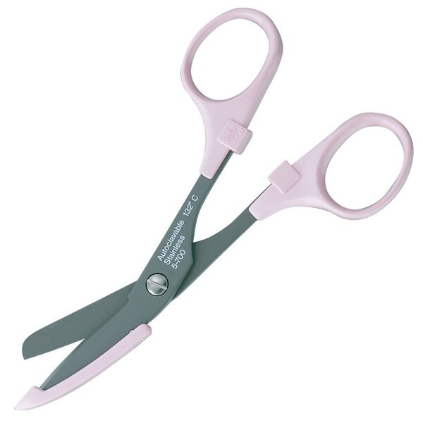 The Miltex 5700 nurse's Bandage Scissors are made of German OR Grade surgical steel They have a pink handle with angled tip to help in cutting bandages without gouging the patients skin This Miltex bandage scissor measures 55in