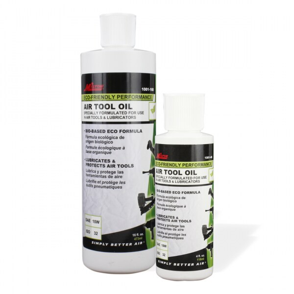 Create “Simply Better Air” with the Eco-Friendly Air Tool Oil from Milton Industries. HEALTH RISK OF CONVENTIONAL TOOL OIL: When operating an air tool, it pulls in lubricated compressed air, usually exhausting that air (and the oil mist) - much to the harm of the tool’s operator. This residual oil mist is responsible for most of the inhalation warnings found on the labels of conventional tool oils. BENEFITS OF MILTON’S ECO-FRIENDLY PNEUMATIC TOOL OIL: By utilizing vegetable-based oils, our Eco-Friendly Bio-Air Tool Oil keeps operators’ safety in mind with a non-hazardous, environmentally friendly formulation. Extend the life and performance of air tools, lubricators, valves, and cylinders with Milton’s Eco-friendly formulation. Not only does our Air Tool Oil reduce frequency of maintenance but can also prevent the seizure of tools and pneumatic equipment during the moments you need them the most. Available in: 4 oz and 16 oz sizes.
