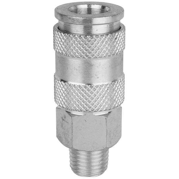 High Flow Steel Quick-Connect Air Coupler – 1/4" NPT Milton’s industrial (M-style) quick-connect couplers are made of heavy-duty steel which is ideal for applications requiring a durable and long lasting pneumatic coupler. These high flow 3/8" female NPT V-Style couplers have a push-type sleeve release. Simply push plug into coupler to engage; Pull the sleeve release back to remove. Perfect for high volume, low pressure applications. 1⁄4” basic flow size. 300 PSI max pressure. Milton V-Style couplers will also accept M-Style and A-Style plugs. However, V-Style plugs are recommended to retain maximum flow. Specifications: - Maximum Pressure: 300 PSI – 40 SCFM - 1/4" NPT - Male - Compliant with military specification MIL-C-4109