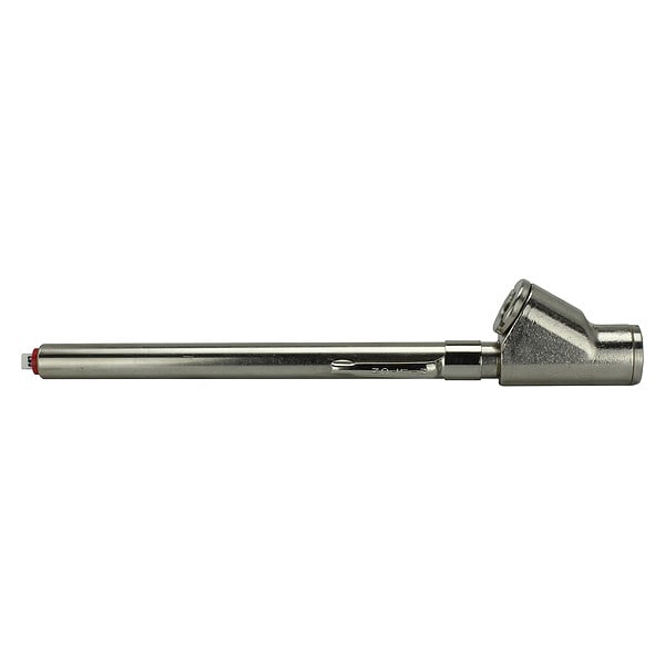 Straight Foot Air Chuck, Product Type Tire Pressure Gauge, Gauge Type Pencil, Material Brass, Overall Length 9 3/4 in, Tread Depth Calibration Increments Not Applicable, Tire Pressure Calibration Increments 2 psi, Minimum Operating Air Pressure 20 psi, Maximum Operating Air Pressure 120 psi, Includes Not Applicable, Features Reads in Both Kilopascal and Pounds Per Square Inch