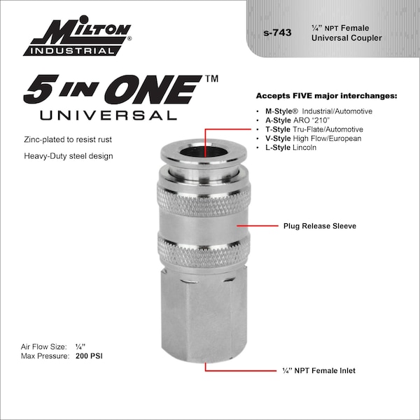 Universal Coupler, 1/4"Body, 1/4"FNPT