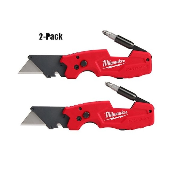 The MILWAUKEE FASTBACK 6-in-1 Folding Utility Knife features a press and flip mechanism providing users with an easy, one-handed opening. The 6-in-1 knife has a wire stripper, folding screwdriver, and a fold-out 1/4 in. bit holder. The bit holder includes a reversible Phillips #2 and slotted 1/4 in. bit. This folding utility knife is equipped with a built-in bottle opener providing users with added functionality. Tool free blade change allows the user to quickly and easily insert a new blade. This multifunction pocket knife has an all metal design for a longer life with a durable wire belt clip to reduce pocket tearing with a blade holder designed for scoring. The folding utility knife has a metal extension that prevents accidental blade removal and a lanyard hole for convenient tethering. Highlights Metal Body Folding 1/4" Bit Holder Reversible Phillips #2 and Slotted 1/4" Bit Bottle Opener Wire Stripper Durable Wire Belt Clip Reduces Pocket Tearing Blade Storage Stores One Extra Blade Blade Holder Designed for Scoring Metal Extension to Prevent Accidental Blade Removal Lanyard Hole