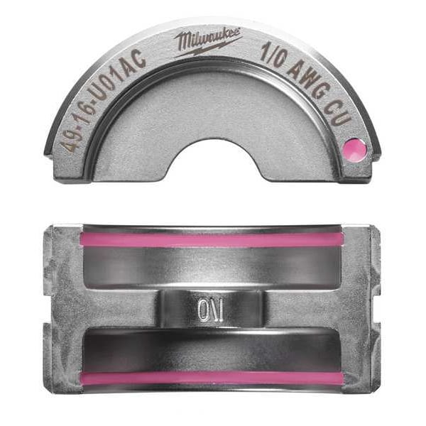 Upper and Lower Crimping Die, Compatible Connector Type U Style Dies, Compatible Cable Type Electrical Wire and Cable Crimping, Number of Crimping Sizes 2, Connector Color Code Pink, Number of Pieces 1, Maximum Crimping Force 6 ton, Compatible with Brand M18(TM) FORCE LOGIC(TM), Compatible Manufacturer Part Number 2679-20, 49-16-U000, Compatible with Series U Style, Application Electrical Wire and Cable Crimping, Crimping Capacity 1/0 AWG, Includes 1/0 Copper U Style Die (49-16-U01AC)