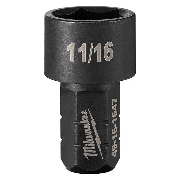 Impact Socket, Socket Size 11/16 in, 6-Point, High Carbon Steel, Black Oxide, Short, Power, Drive Size Not Applicable, SAE, Bolt Clearance 9/16 in, Standards ASME