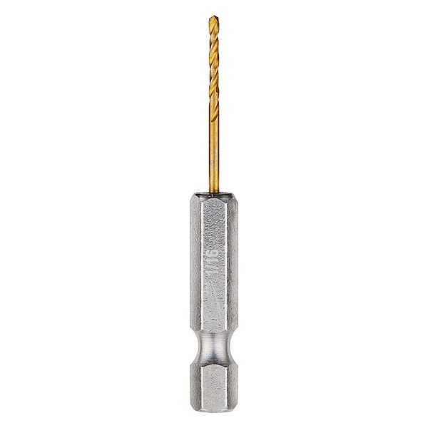 Hex Shank Drill Bit, 1/16 in, Drill Bit Point Angle 135 Degrees , Drill Bit Point Type Split Point, High Speed Steel, TiN, Package Quantity 2