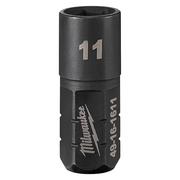 Impact Socket, Socket Size 11 mm, 6-Point, High Carbon Steel, Black Oxide, Short, Power, Drive Size Not Applicable, SAE/Metric, Bolt Clearance 9/16 in, Standards ASME