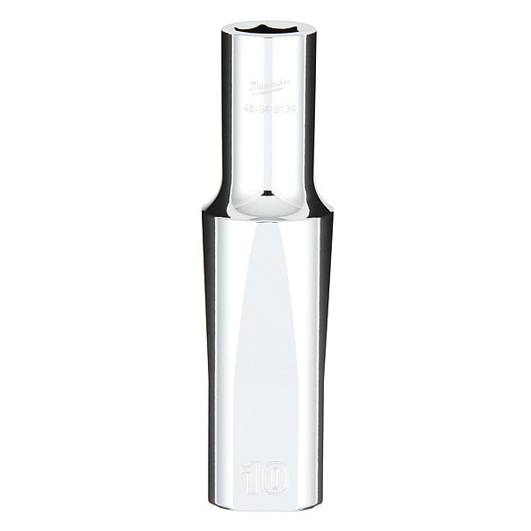 Deep Well Socket, Socket Size 10 mm, 6-Point, Chrome Vanadium Steel, Chrome, Deep, Hand, Drive Size 1/2 in, Metric, Impact Rated No