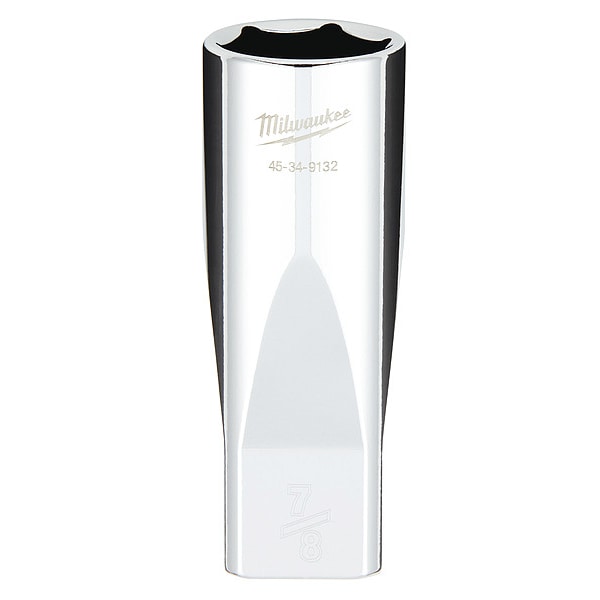 Deep Well Socket, Socket Size 7/8 in, 6-Point, Chrome Vanadium Steel, Chrome, Deep, Hand, Drive Size 1/2 in, SAE, Impact Rated No