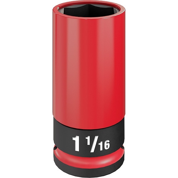 Lug Nut Wheel Socket, Socket Size 1 1/16 in, 6-Point, Plastic, Black Phosphate, Deep, Impact, Drive Size 1/2 in, SAE, Impact Rated Yes, Standards ASME