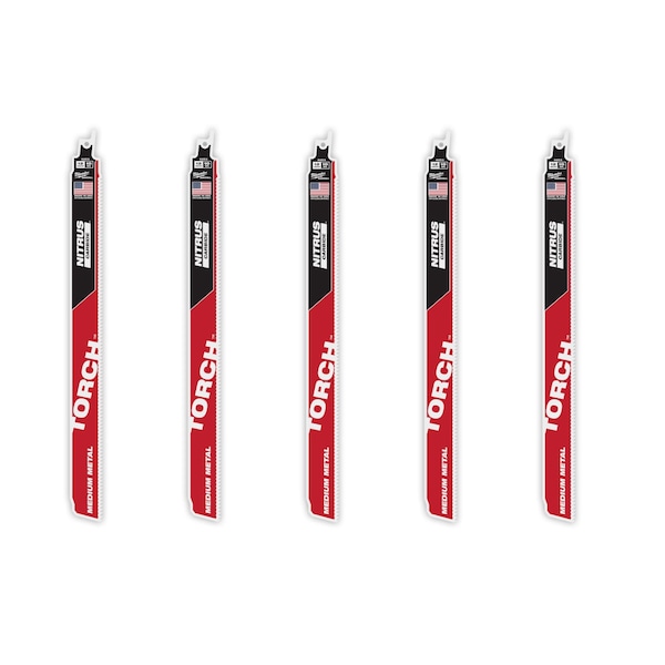 The MILWAUKEE® TORCHTM with NITRUS CARBIDETM for Conduit, Strut, and other medium-thickness metals delivers the fastest cutting, and longest life with a breakthrough Carbide Technology. These NITRUS CARBIDETM reciprocating saw blades are engineered to dissipate heat better than any other demolition blade for faster cutting. The TORCHTM with NITRUS CARBIDETM for Medium metals delivers 2x life versus carbide teeth blades in rigid metal conduit. This 10TPI SAWZALL® blade is ideal for smooth, fast cuts and enhanced durability in conduit, strut, angle iron, and Stainless Steel.