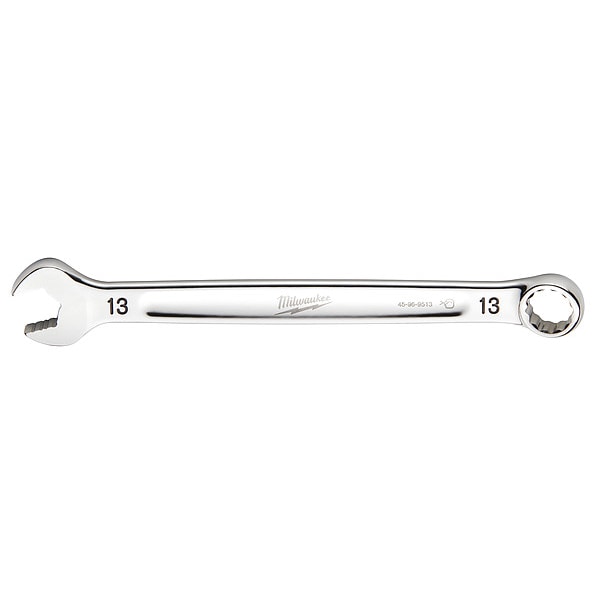 Combination Wrench, Chrome Vanadium Steel, Chrome, Head Size 13 mm, Overall Length 7 in, Head Offset Angle 15 Degrees , Opening Angle (Deg.) 15 Degrees , Standard, Head Thickness 13 mm, Metric, Rounded