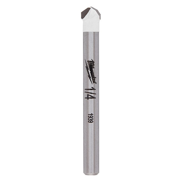 Natural Stone and Tile Drill Bit, 1/4 in, Carbide Tipped, Round, Maximum Drilling Depth 1/2 in, Shank Diameter 9/64 in, Overall Length 2 1/4 in