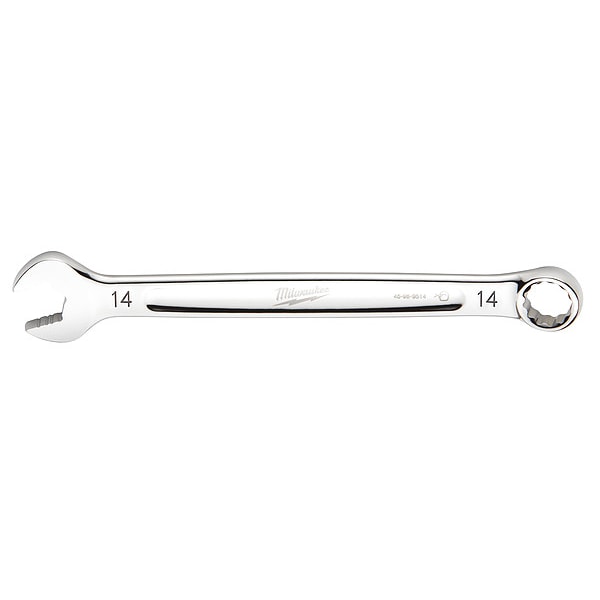 Combination Wrench, Chrome Vanadium Steel, Chrome, Head Size 14 mm, Overall Length 7 3/8 in, Head Offset Angle 15 Degrees , Opening Angle (Deg.) 15 Degrees , Standard, Head Thickness 14 mm, Metric, Rounded