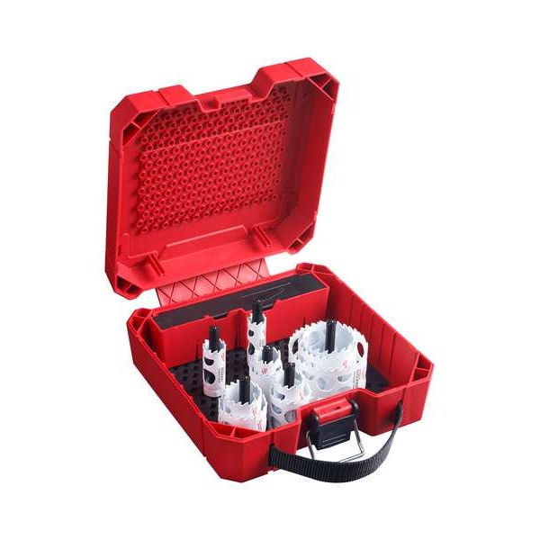 Hole Saw Kit, Primary Material Application General Purpose, Arbor Design Built-In Arbor, Tooth Material Carbide Tipped, Teeth per Inch 3, Max. Cutting Depth 1 5/8 in, Impact Rated Not Impact Rated, Saw Size Range 3/4 in to 3 in, Hole Saw Sizes (Hole Saws) 3/4 in, 7/8 in, 1 in, 1 1/8 in, 1 1/4 in, 1 3/8 in, 1 1/2 in, 1 3/4 in, 2 in, 2 9/16 in, 3 in, Thread Size 1/2 In.-20, 5/8 In.-18, Shank Size 3/8 in, Number of Pieces 15