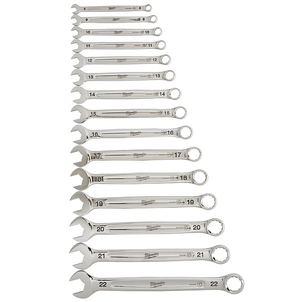 Milwaukee has designed Combination Wrenches from the ground up, delivering maximum torque and ultimate user comfort. The MAX BITE Open-End Grip improves the wrench's grip on nuts and bolts, and the geometry reduces rounding and stripping. MAX BITE offers 25% More Torque than competitive wrench designs. The Comfortable I-Beam Handle Design allows superior user comfort, even while applying high torque. Milwaukee wrenches feature Ink-Filled Size Labels for easy size identification, and quick distinction between SAE and metric sets. The 15pc kits come in a storage tray designed for Long-Term Storage, keeping your tool chest organized. Standing behind products, Milwaukee offers a Lifetime Guarantee on all of Combination Wrench Sets.