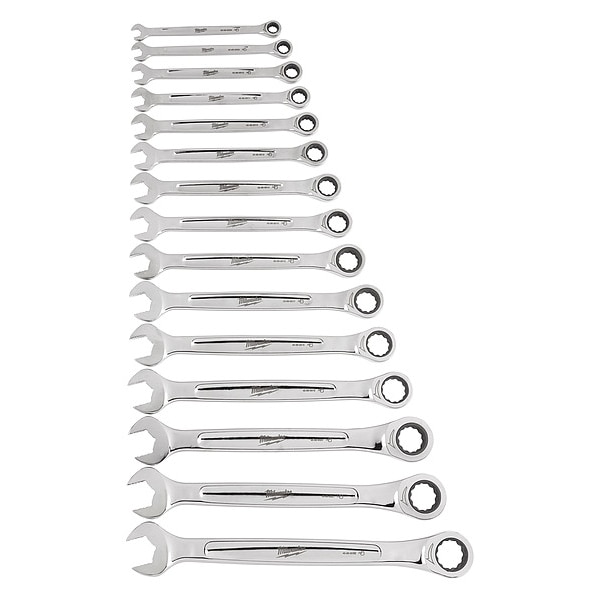 15pc Ratcheting Combination Wrench Set - Metric