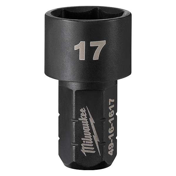Impact Socket, Socket Size 17 mm, 6-Point, High Carbon Steel, Black Oxide, Short, Power, Drive Size Not Applicable, SAE/Metric, Bolt Clearance 9/16 in, Standards ASME