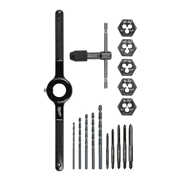 Tap and Die Set, Number of Pieces 17, Die Shape Hex, Tap Type Plug
