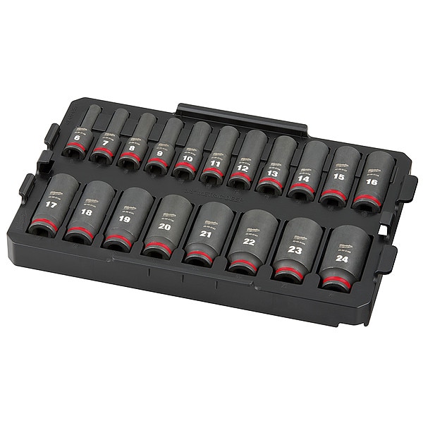 19 pc. SHOCKWAVE Impact Duty 3/8" Drive Metric Deep Well Socket Set, PACKOUT Low Organizer Tray