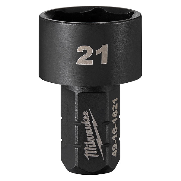 Impact Socket, Socket Size 21 mm, 6-Point, High Carbon Steel, Black Oxide, Short, Power, Drive Size Not Applicable, SAE/Metric, Bolt Clearance 9/16 in, Standards ASME