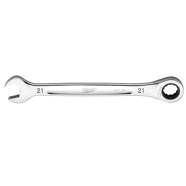 Ratcheting Combination Wrench, Chrome Vanadium Steel, Chrome, Head Size 21 mm, Overall Length 11 in, Head Offset Angle 0 Degrees , Opening Angle (Deg.) 0 Degrees , Standard, Head Thickness 21 mm, Metric, Rounded