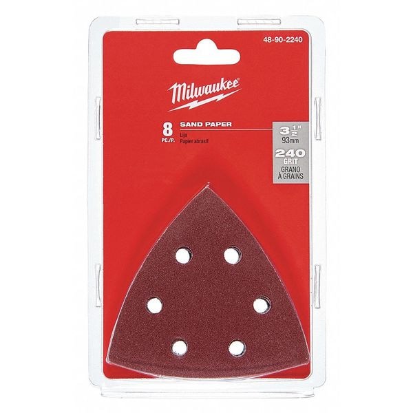 Oscillating Tool Sanding Sheet Set, Shape Triangle, Grit 240, Abrasive Material Aluminum Oxide, Width 3 1/2 in, Length 3 1/2 in, Abrasive Color Black, Backing Type Hook-and-Loop, Material Application Wood, For Tool Type Oscillating Tool, Flexible No, Number of Sheets 8, Features Fast Material Removal, Long Lasting Silicon Carbide Abrasive Ideal For Wood and Paint