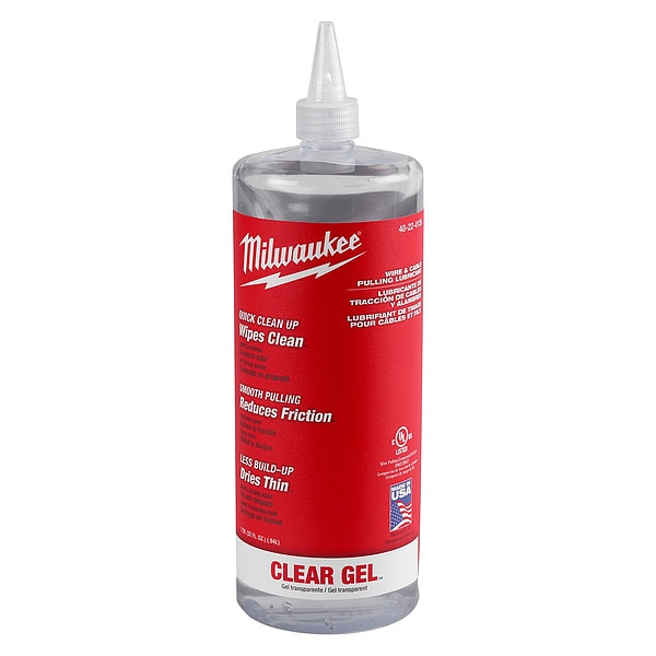 MILWAUKEE® Wire and Cable Pulling Clear Gel Lubricant is water-based lubricant that wipes clean off of surfaces to provide a quick clean-up. The wire pulling lubricant reduces friction for smooth pulling of wire and cable through conduit. The clear gel dries thin for less build-up on wires and in conduit. It is compatible with all cable types and remains stable from 32°F to 120°F.