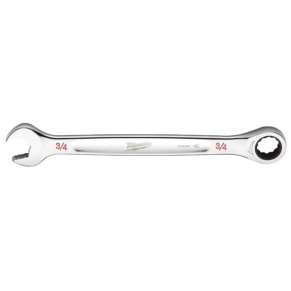 Ratcheting Combination Wrench, Chrome Vanadium Steel, Chrome, Head Size 3/4 in, Overall Length 10 1/8 in, Head Offset Angle 0 Degrees , Opening Angle (Deg.) 0 Degrees , Standard, Head Thickness 3/4 in, SAE, Rounded