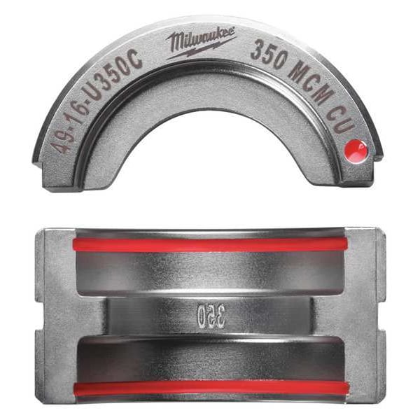 Upper and Lower Crimping Die, Compatible Connector Type U Style Dies, Compatible Cable Type Electrical Wire and Cable Crimping, Number of Crimping Sizes 2, Connector Color Code Red, Number of Pieces 1, Maximum Crimping Force 6 ton, Compatible with Brand M18(TM) FORCE LOGIC(TM), Compatible Manufacturer Part Number 2679-20, 49-16-U000, Compatible with Series U Style, Application Electrical Wire and Cable Crimping, Crimping Capacity 350 kcmil, Includes 350 MCM Copper U Style Die (49-16-U350C)