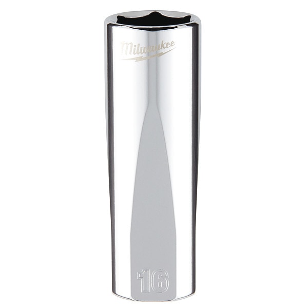 Deep Well Socket, Socket Size 16 mm, 6-Point, Chrome Vanadium Steel, Chrome, Deep, Hand, Drive Size 3/8 in, Metric, Impact Rated No