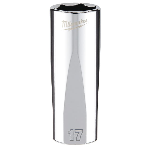 Deep Well Socket, Socket Size 17 mm, 6-Point, Chrome Vanadium Steel, Chrome, Deep, Hand, Drive Size 3/8 in, Metric, Impact Rated No