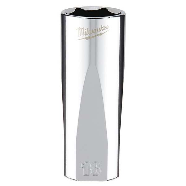 Deep Well Socket, Socket Size 18 mm, 6-Point, Chrome Vanadium Steel, Chrome, Deep, Hand, Drive Size 3/8 in, Metric, Impact Rated No