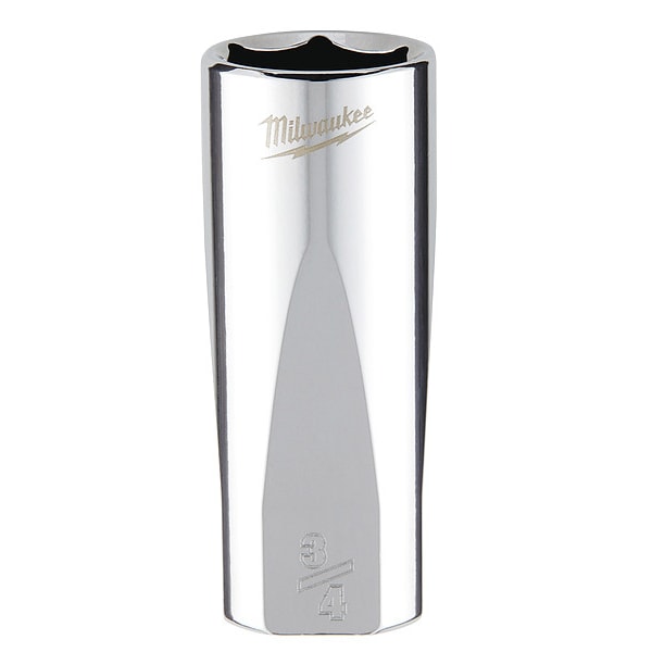 Deep Well Socket, Socket Size 3/4 in, 6-Point, Chrome Vanadium Steel, Chrome, Deep, Hand, Drive Size 3/8 in, SAE, Impact Rated No