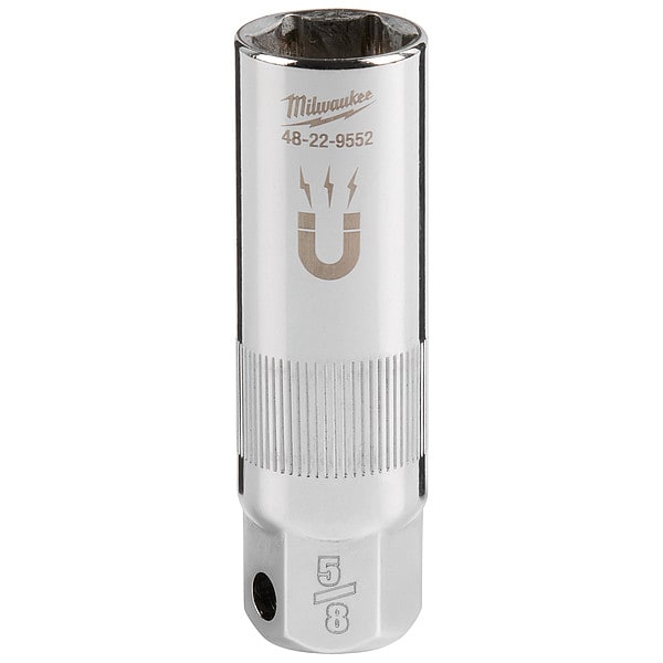 Spark Plug Socket, Hand, Chrome, 6-Point, Socket Size 5/8 in, Bolt Clearance 8.4mm, Drive Size 3/8 in, Impact Rated No, Chrome Vanadium Steel, SAE, Non-Magnetic No, Non-Sparking No, Socket Depth Deep, ASME B107.17, ASME B107.34, ASME B107.4, ASTM B117, ASTM B571, ASTM D968-05, No