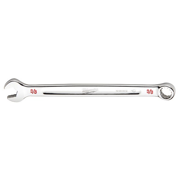 Combination Wrench, Chrome Vanadium Steel, Chrome, Head Size 3/8 in, Overall Length 6 1/8 in, Head Offset Angle 15 Degrees , Opening Angle (Deg.) 15 Degrees , Standard, Head Thickness 3/8 in, SAE, Rounded