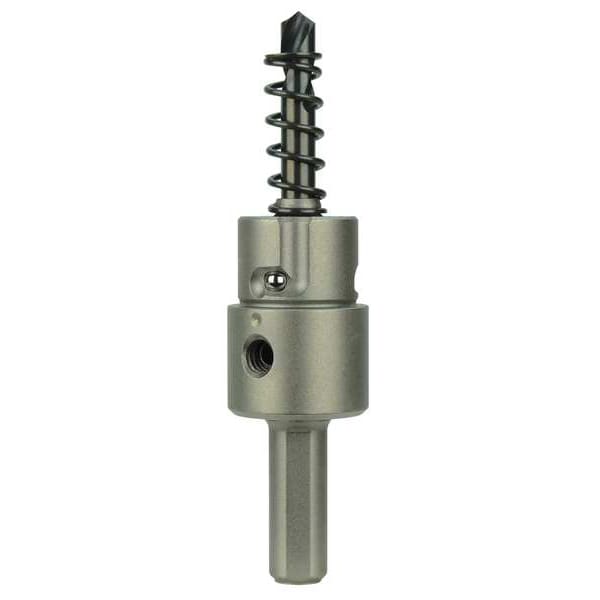Quick change arbor designed for Milwaukee Carbide Tooth Sheet Metal and Steel Plate Cutters. Includes replaceable pilot bit and replaceable ejector spring. (49-57-0035)