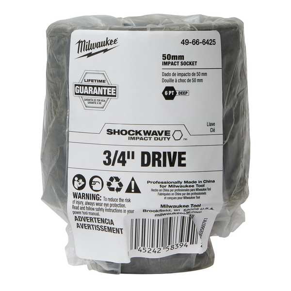 Deep Impact Socket, Socket Size 50 mm, 6-Point, Steel, Black Phosphate, Deep, Impact, Drive Size 3/4 in, Metric, Impact Rated Yes, Bolt Clearance 1 3/4 in, Standards ASME