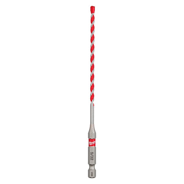 Hammer Drill Bit, Hex, 5/32 in, Carbide Tipped, 6 in Overall Length, Maximum Drilling Depth 4 in, Shank Diameter 1/4 in, Shank Hex Size 1/4 in