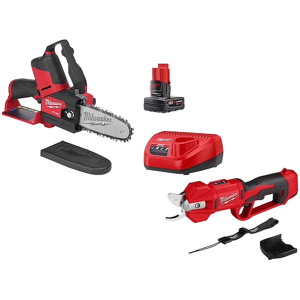 Combination Kit, Battery Platform M12(TM) REDLITHIUM(TM), Included Blower Type Not Applicable, Blower Maximum Air Speed Not Applicable, Blower Air Flow Not Applicable, Included String Trimmer Type Not Applicable, String Trimmer Cutting Width Not Applicable, Included Chainsaw Cordless Pruning Saw, Chainsaw Bar Length 6 in, Included Hedge Trimmer Type Not Applicable, Hedge Trimmer Blade Length Not Applicable, Included Pole Saw Type Not Applicable, Pole Saw Bar Length Not Applicable