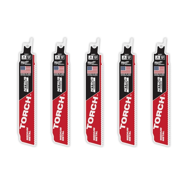The MILWAUKEE® TORCHTM with NITRUS CARBIDETM for Conduit, Strut, and other medium-thickness metals delivers the fastest cutting, and longest life with a breakthrough Carbide Technology. These NITRUS CARBIDETM reciprocating saw blades are engineered to dissipate heat better than any other demolition blade for faster cutting. The TORCHTM with NITRUS CARBIDETM for Medium metals delivers 2x life versus carbide teeth blades in rigid metal conduit. This 10TPI SAWZALL® blade is ideal for smooth, fast cuts and enhanced durability in conduit, strut, angle iron, and Stainless Steel.