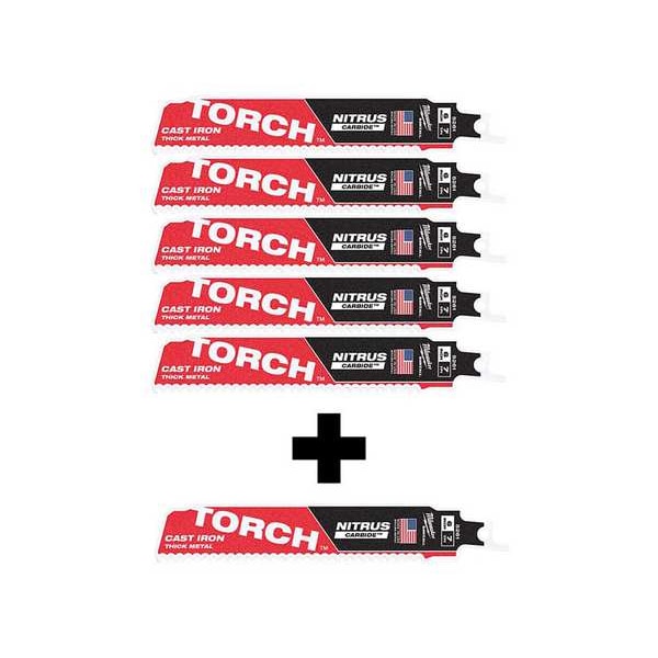 Reciprocating Saw Blade, Primary Material Application Thick Metal, Materials Cut Ferrous Metals, Stainless Steel, Blade Length 6 in, Blade Width 1 in, Teeth per Inch 7, Blade Thickness 3/64 in, Cut Width 0.05 in, Blade Material Carbide, Tip Material Carbide, Back Style Straight, Number of Cutting Edges 1, Cutting Edge Style Rigid for Straight Cuts, For Use With Saw Type Reciprocating Saws