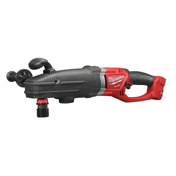Cordless Right Angle Drill, Voltage 18.0, Bare Tool, Battery Capacity Not Specified, Cordless Tool Battery Type Li-Ion, Brushless Motor Yes, Number of Batteries 0, M18 FUEL(TM) Super Hawg(TM) Series, No Load RPM 0 to 350/0 to 950, Chuck Size 7/16 in Hex Quick Lock, Max. Power Not Specified, Max. Torque Not Specified, Battery Included No, Handle Type Loop, Battery Pack Replacement 35GJ99, Tool Length 22 In., Tool Weight 13.5 lb, Includes Side Handle